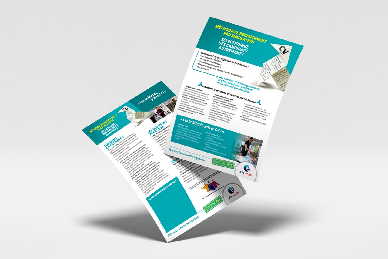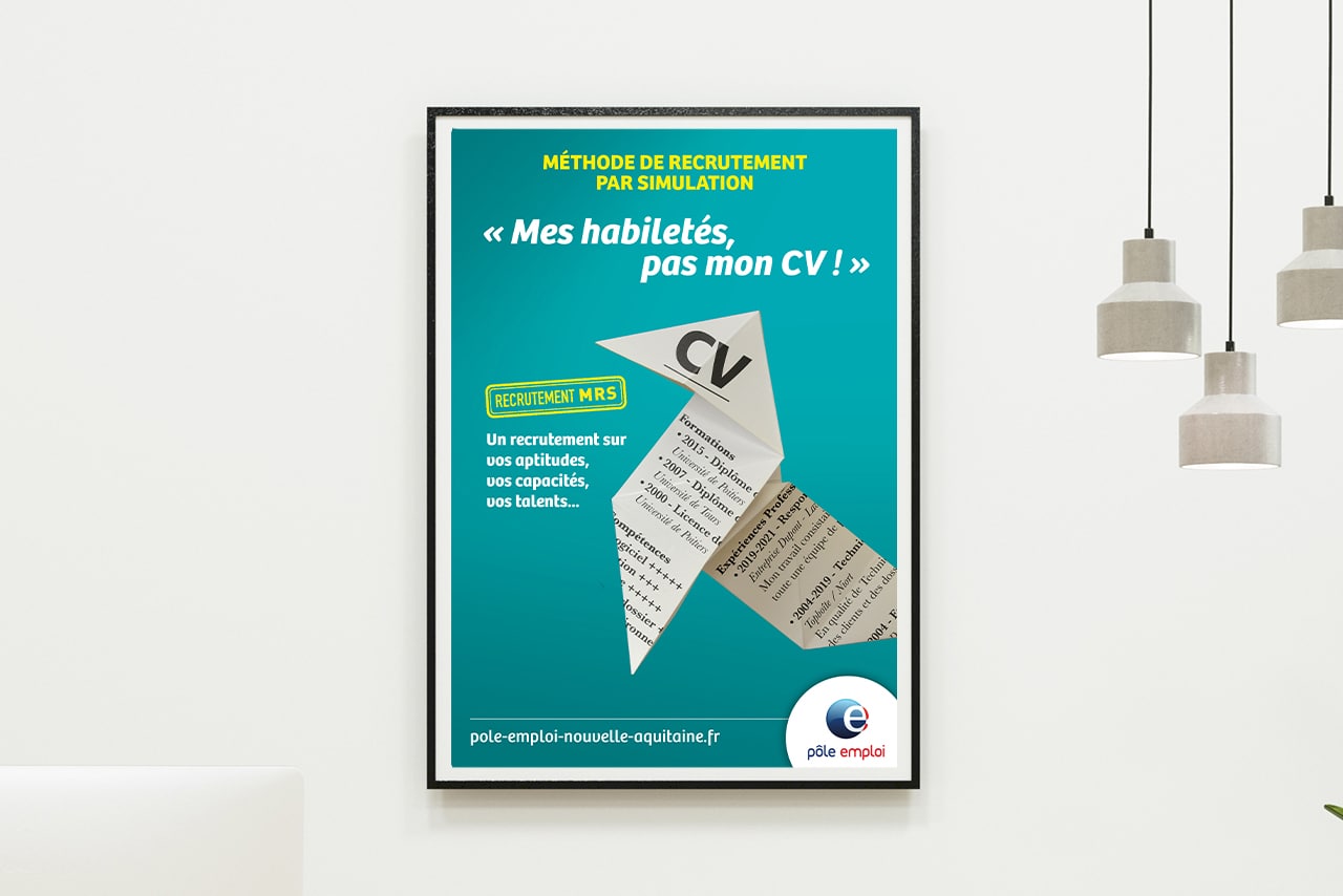 Des réalisation graphiques imaginée par l’agence Blue Com et visible dans les agences Pôle Emploi de la région Nouvelle Aquitaine.